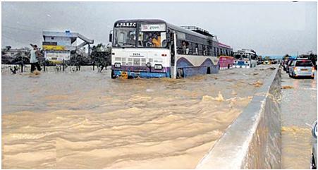 Figure 4: National Highway Number 5 inundated with water near Ongole (Source: Sakshi newspaper).