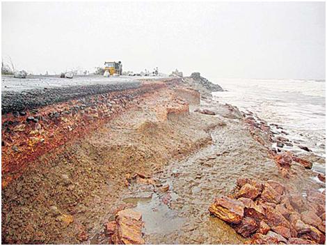 Figure 5: Damage of sea shore embankment at Uppada in East Godavari District (Source: Sakshi newspaper).