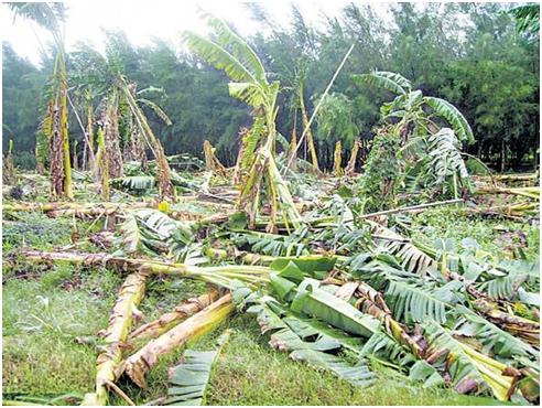 Figure 6: Damage to banana trees in Krishna District (Source: Sakshi newspaper).