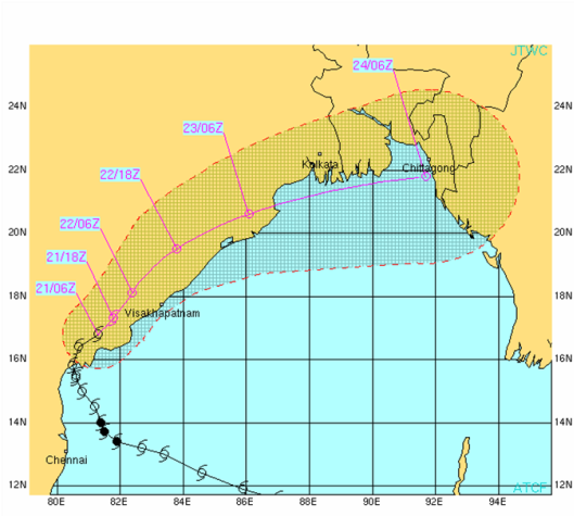 Figure 1: Observed and forecasted path of Cyclone Laila (Source: JTWC).