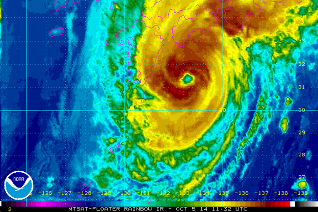 Figure 1: Infrared satellite image of Phanfone at 11:32 UTC 5 October. (Source: NOAA)