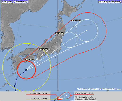 Figure 2: JMA track forecast as of 12:00 UTC 5 October. (Source: JMA)